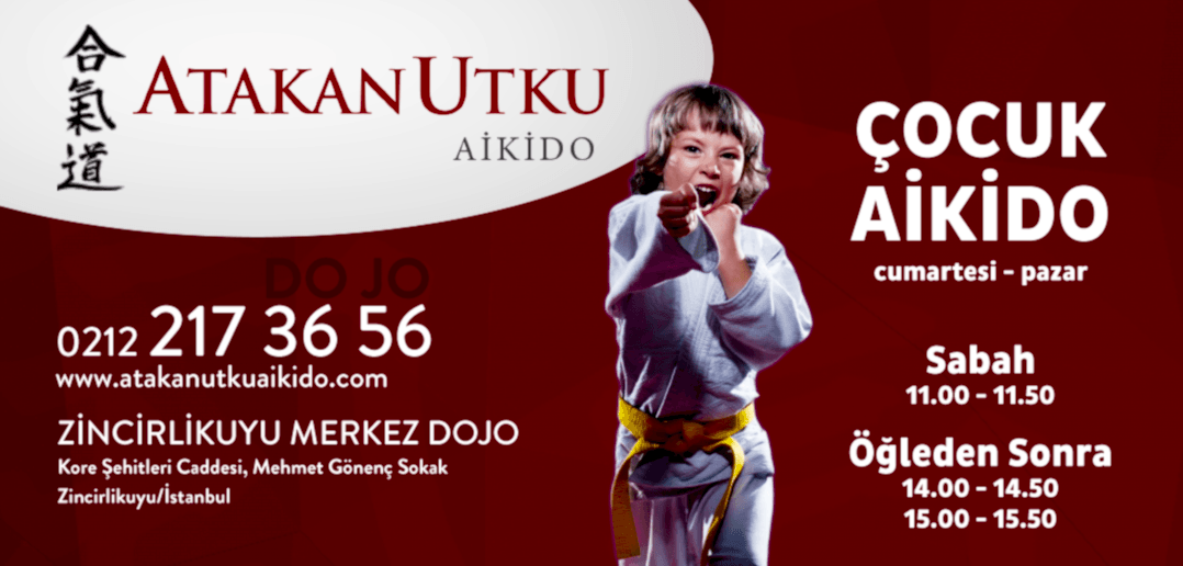 Çocuklarımızın zihinsel ve bedensel gelişimleri için Aikido’yu seçebilirsiniz. Çocuk Aikido programımız için kendinizi ders saatlerimize göre ayarlayın. Daha detaylı bilgi için Zincirlikuyu Merkez Dojo’muzu arayabilirsiniz.